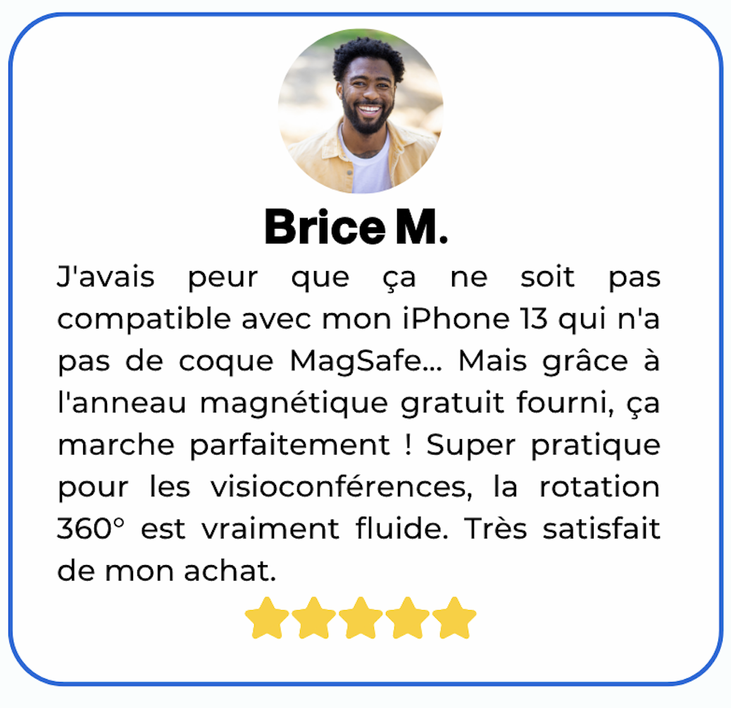 Grâce à son système MagSafe et à L'ANNEAU MAGNÉTIQUE GRATUIT INCLUS, vous pouvez profiter de toutes ses fonctionnalités peu importe le téléphone que vous utilisez.