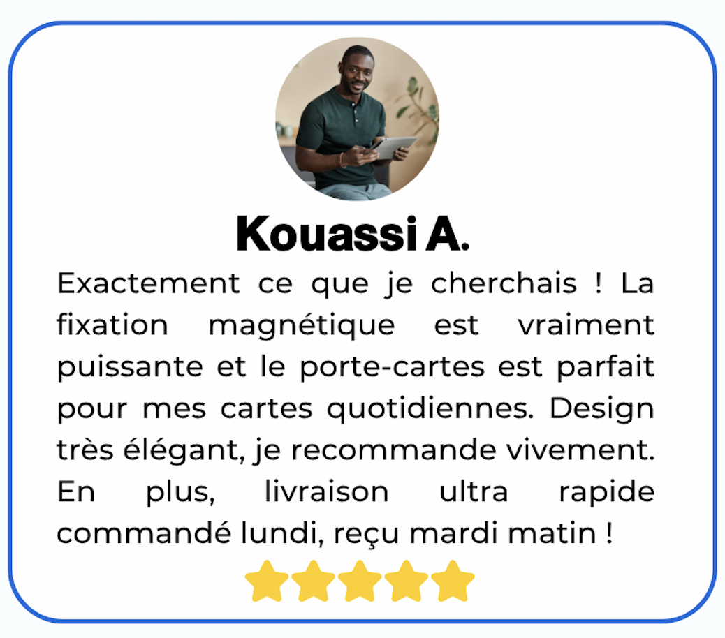 Le portefeuille qui vous suit partout. Fixation magnétique sur smartphone. Fini les poches encombrées et les portefeuilles oubliés !