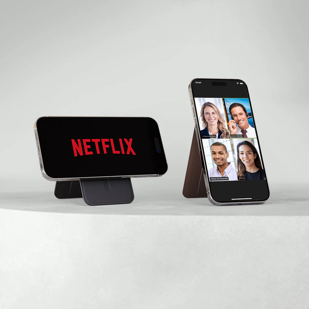 Portefeuille transformable en support smartphone - design ultra-fin, fonction maximale.